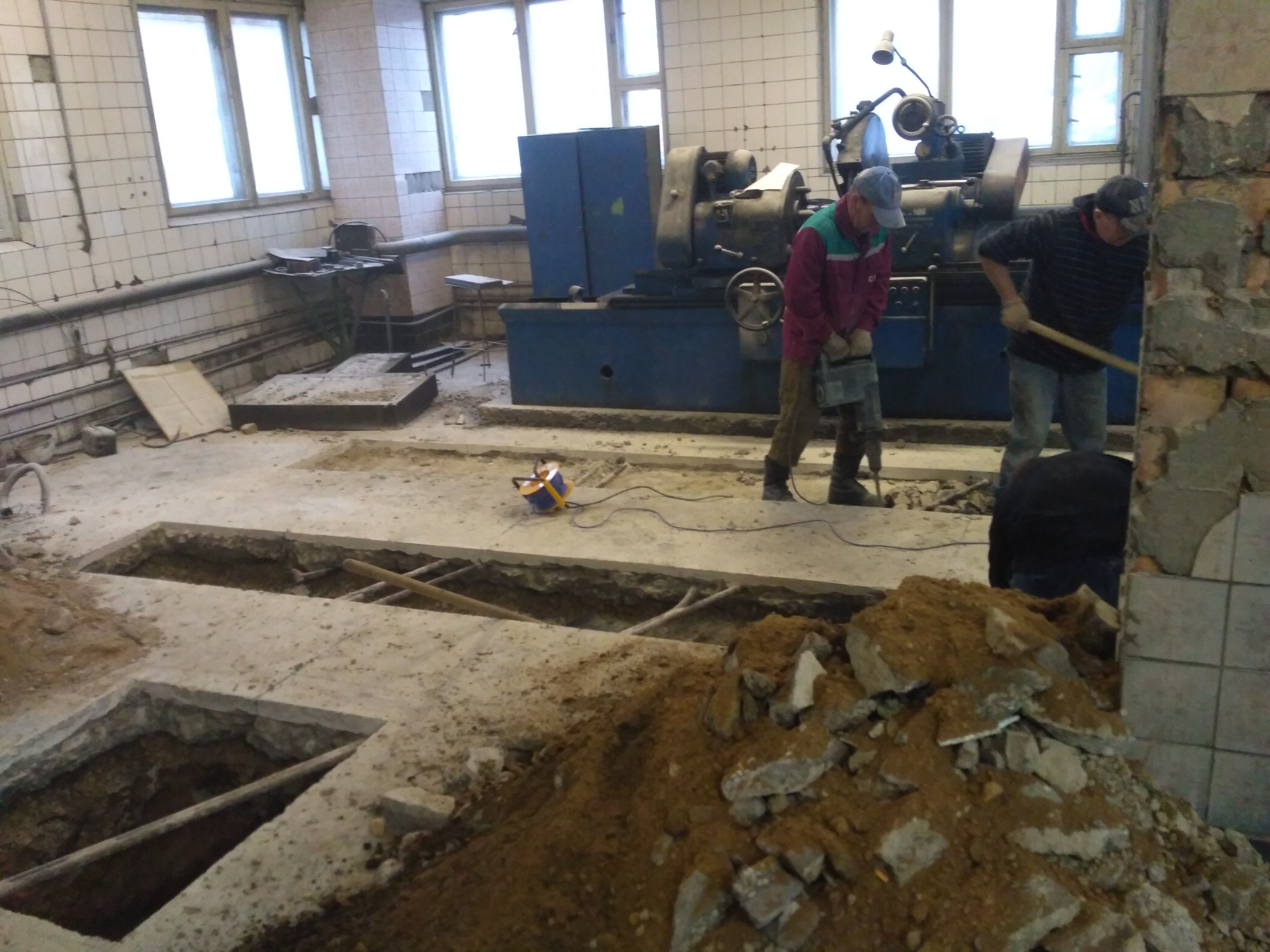 Были произведены работы по демонтажу бетонного основания и выемке грунта с последующим вывозом на свалку и устройством бетонных оснований под установку подъёмников.