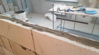Произвели доставку материала, сделали штробы в стяжке пола для установки блоков и осуществили монтаж перегородок с армированием и перевязкой со стенами.