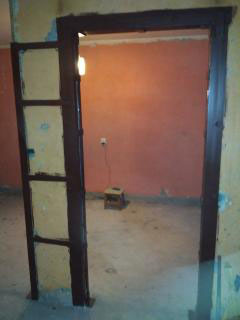 По проекту вырезать новый дверной проём в стене и усилить его.
