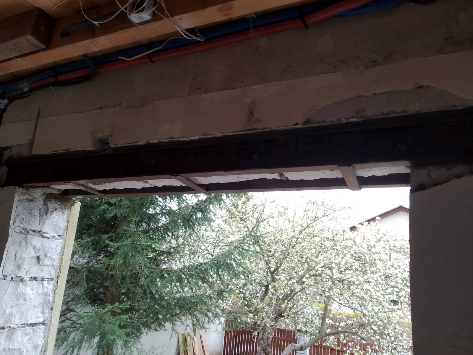 Установлены швеллера, которые взяли на себя функцию несущей перемычки, и вырезан новый оконный проём, с использованием алмазной резки бензорезом и дробления отбойниками.
