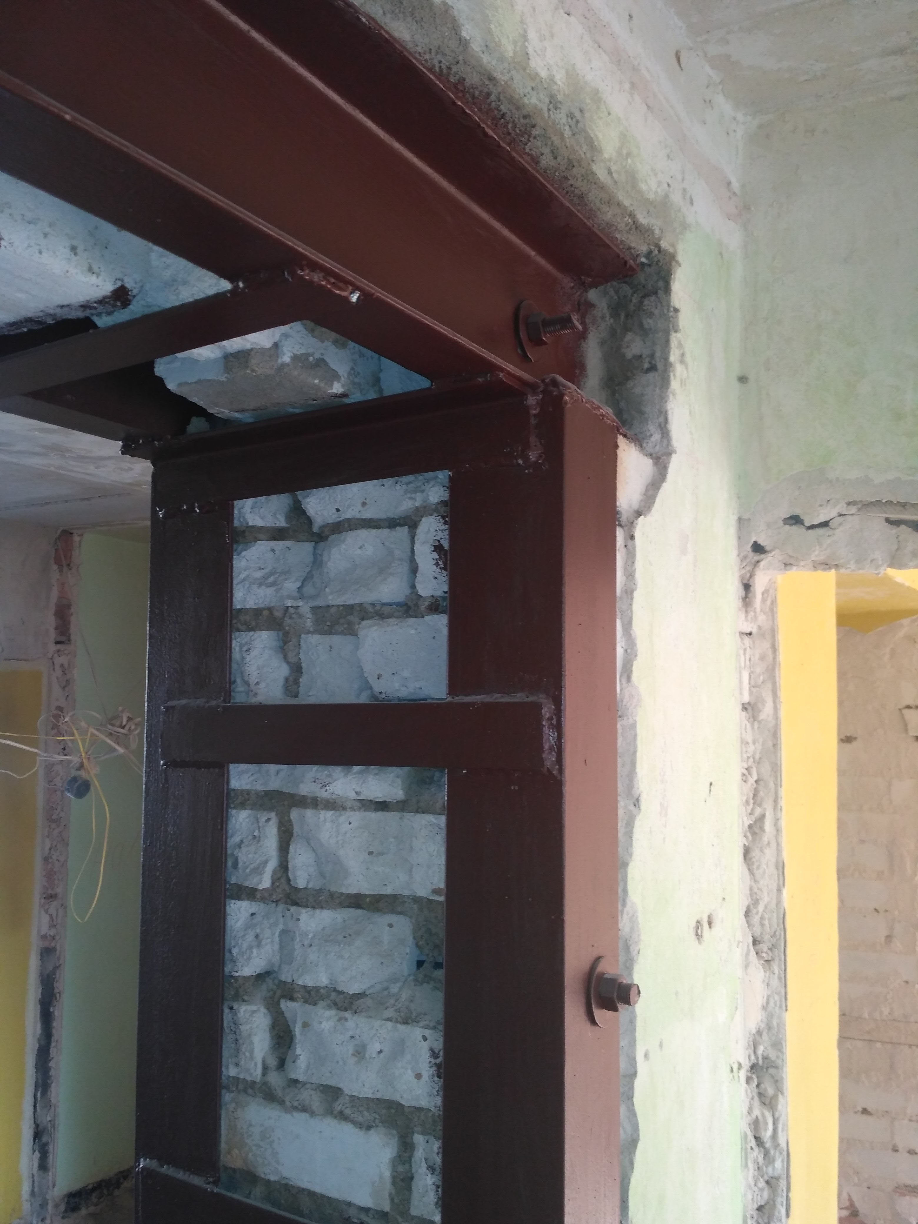 Усиления несущих бетонных, кирпичных или монолитных стен уголками и швеллером