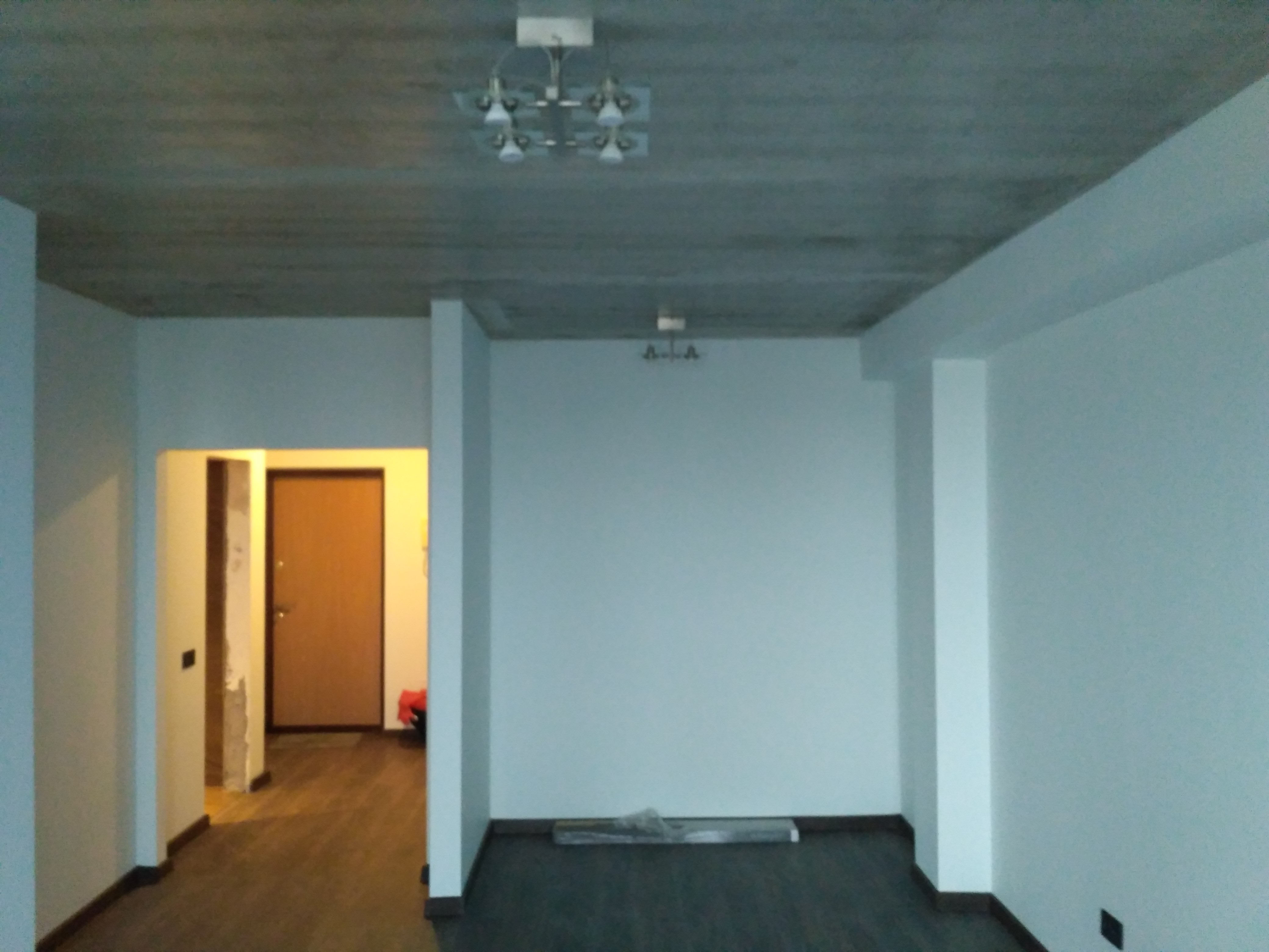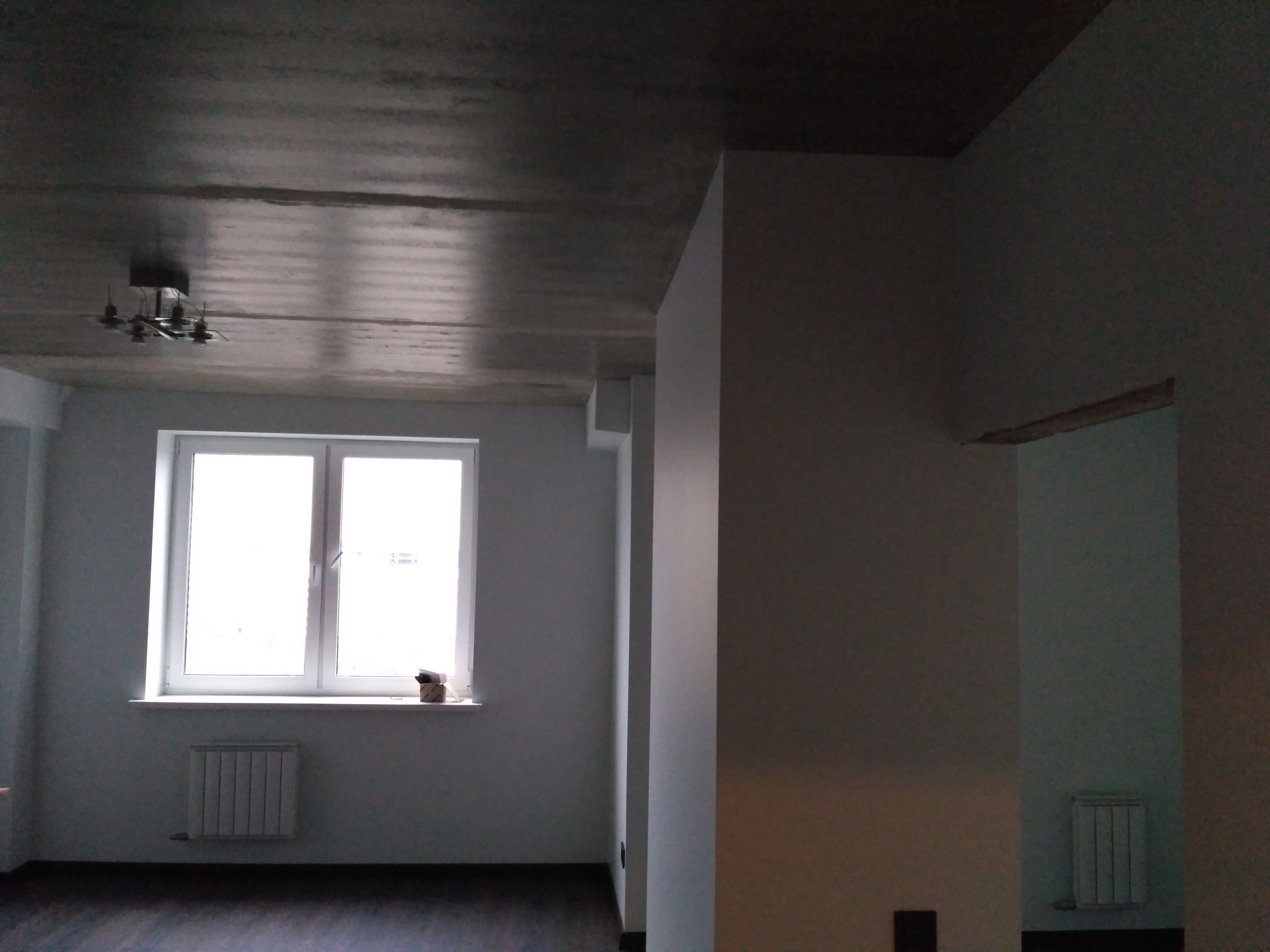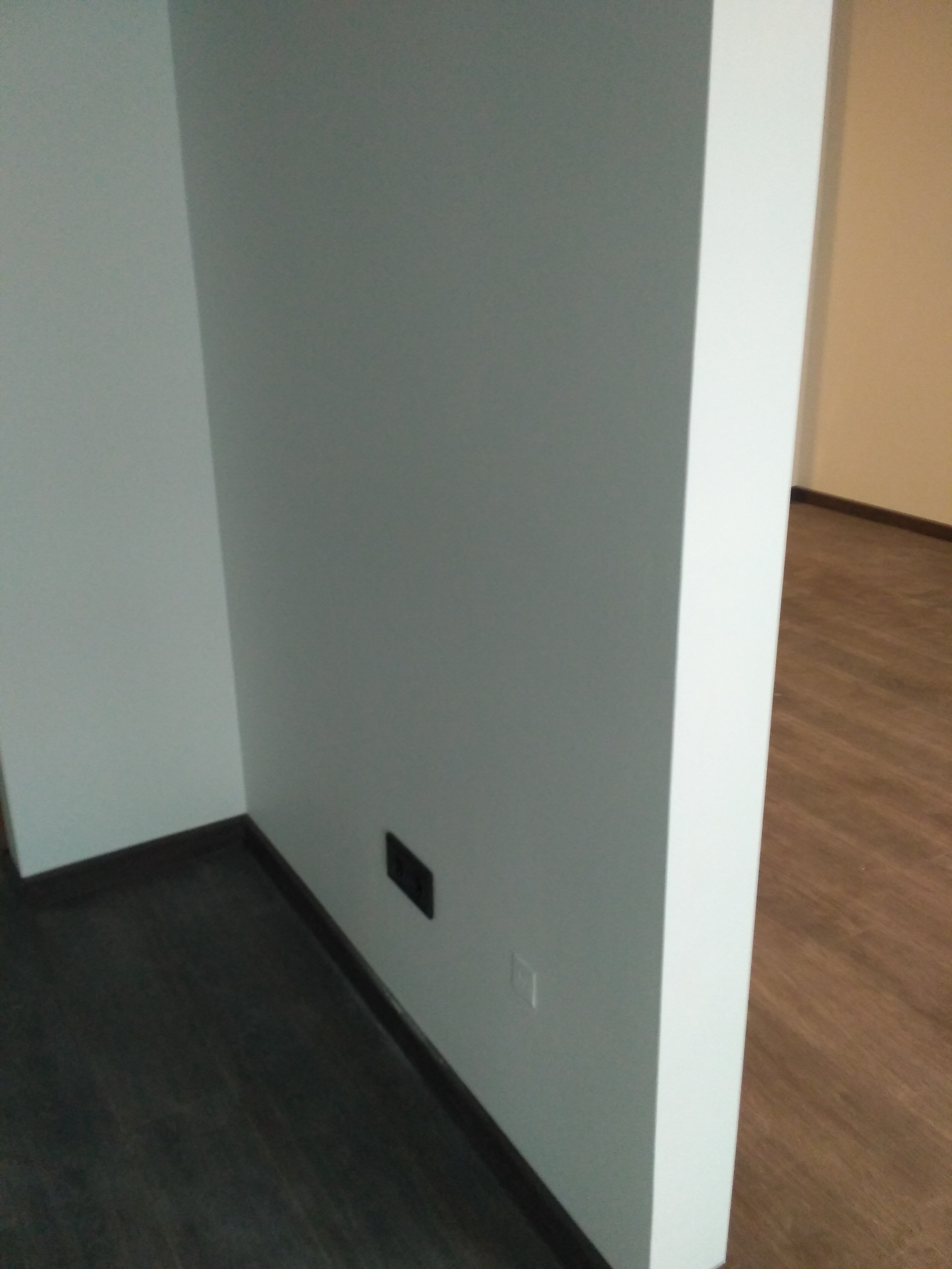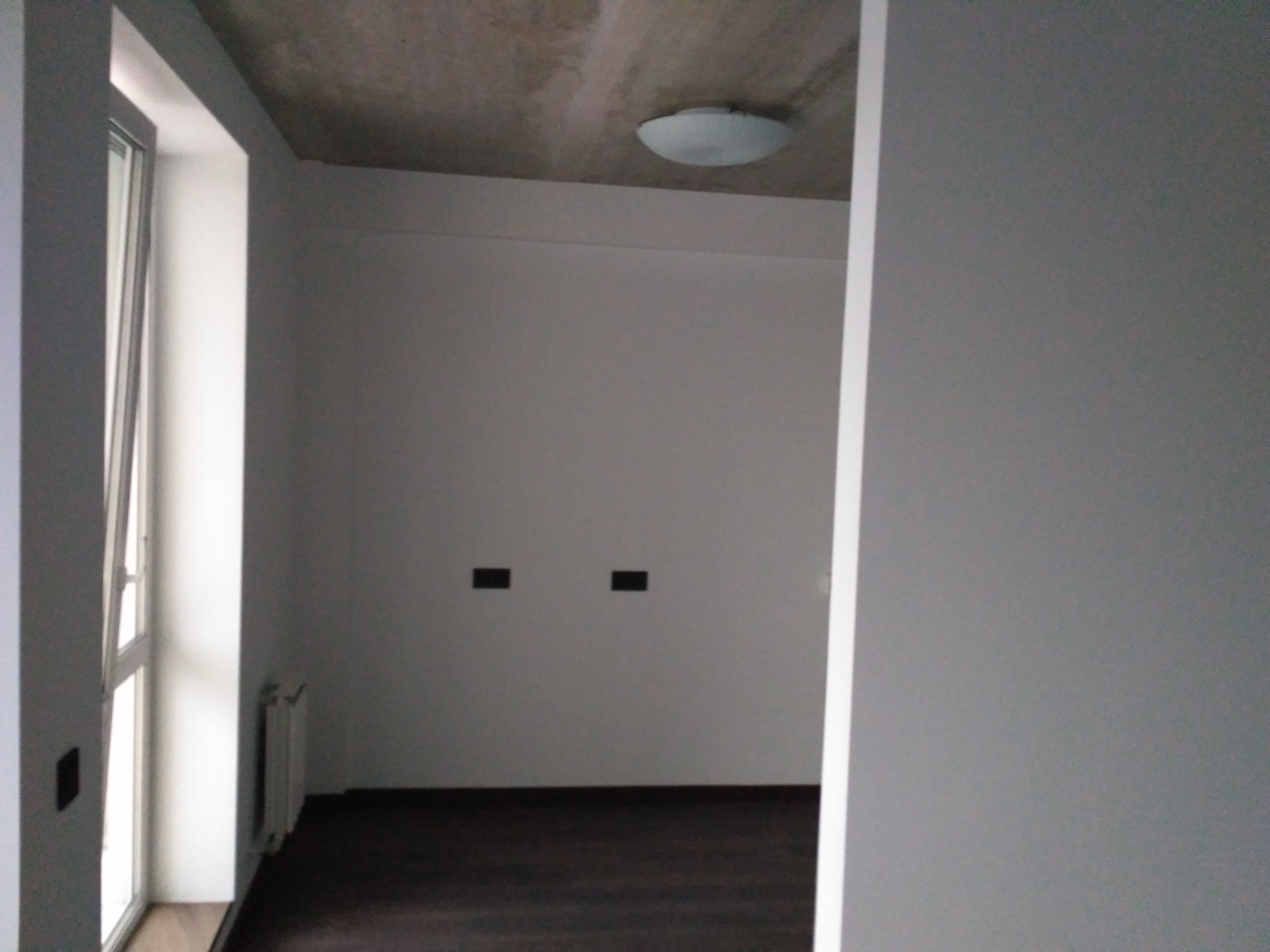 Стены подготовлены и покрашены в белый цвет, а на полу натуральная паркетная доска.