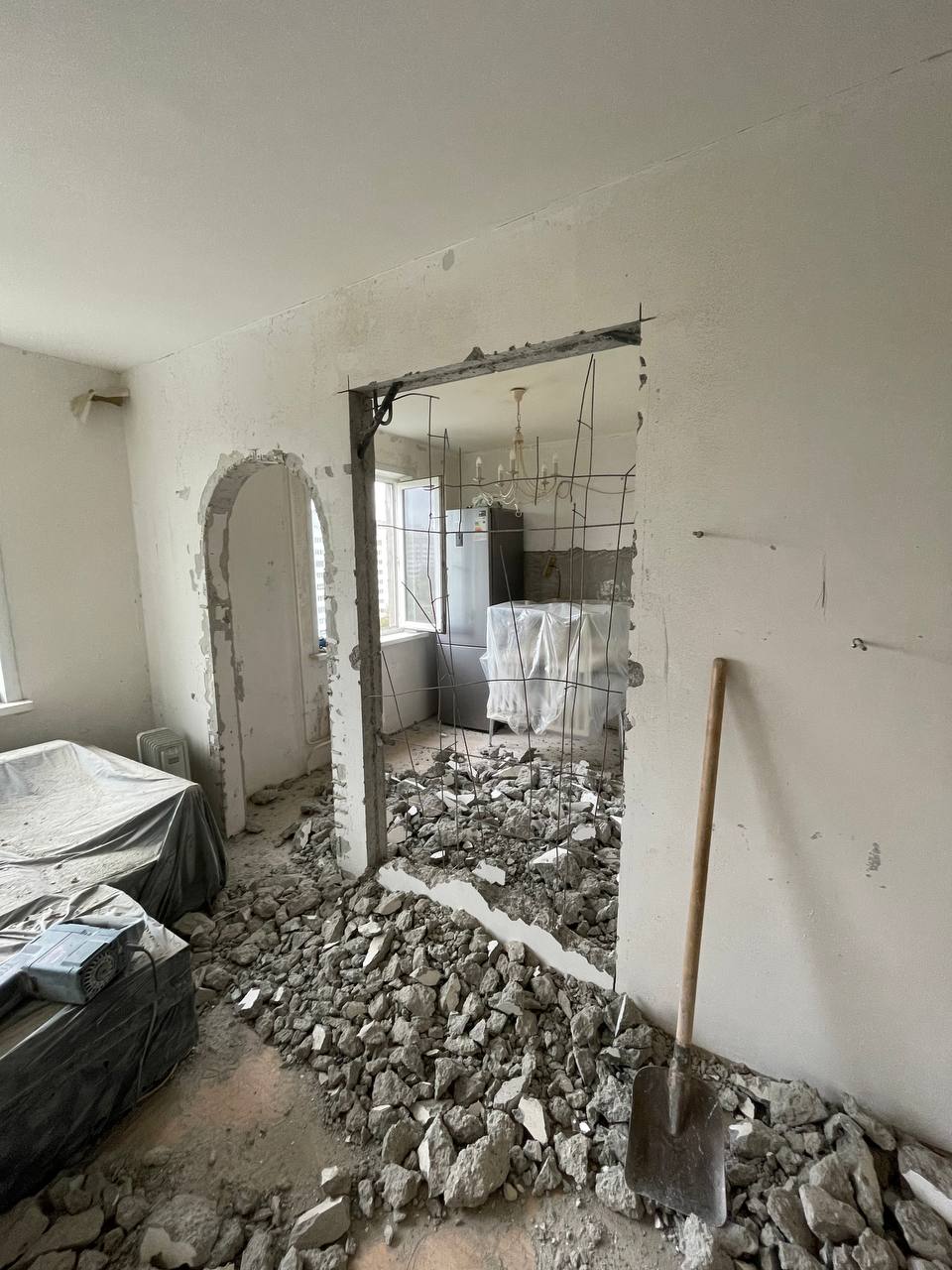 Перепланировка квартиры: демонтаж ламината, устройство двух проемов в несущих стенах.