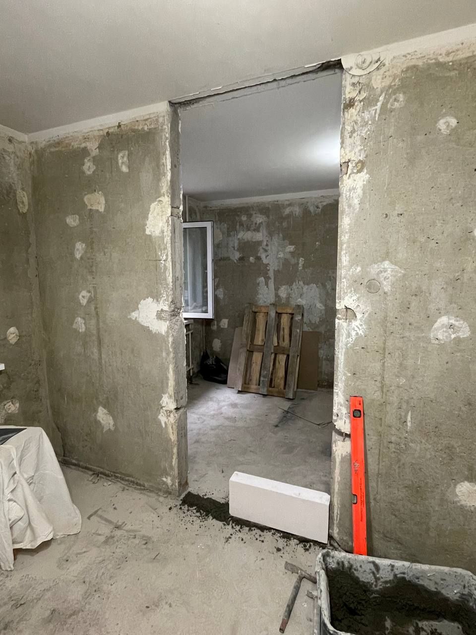 Устройство проема в несущей стене, работы по возведению перегородок из г/с блока.
