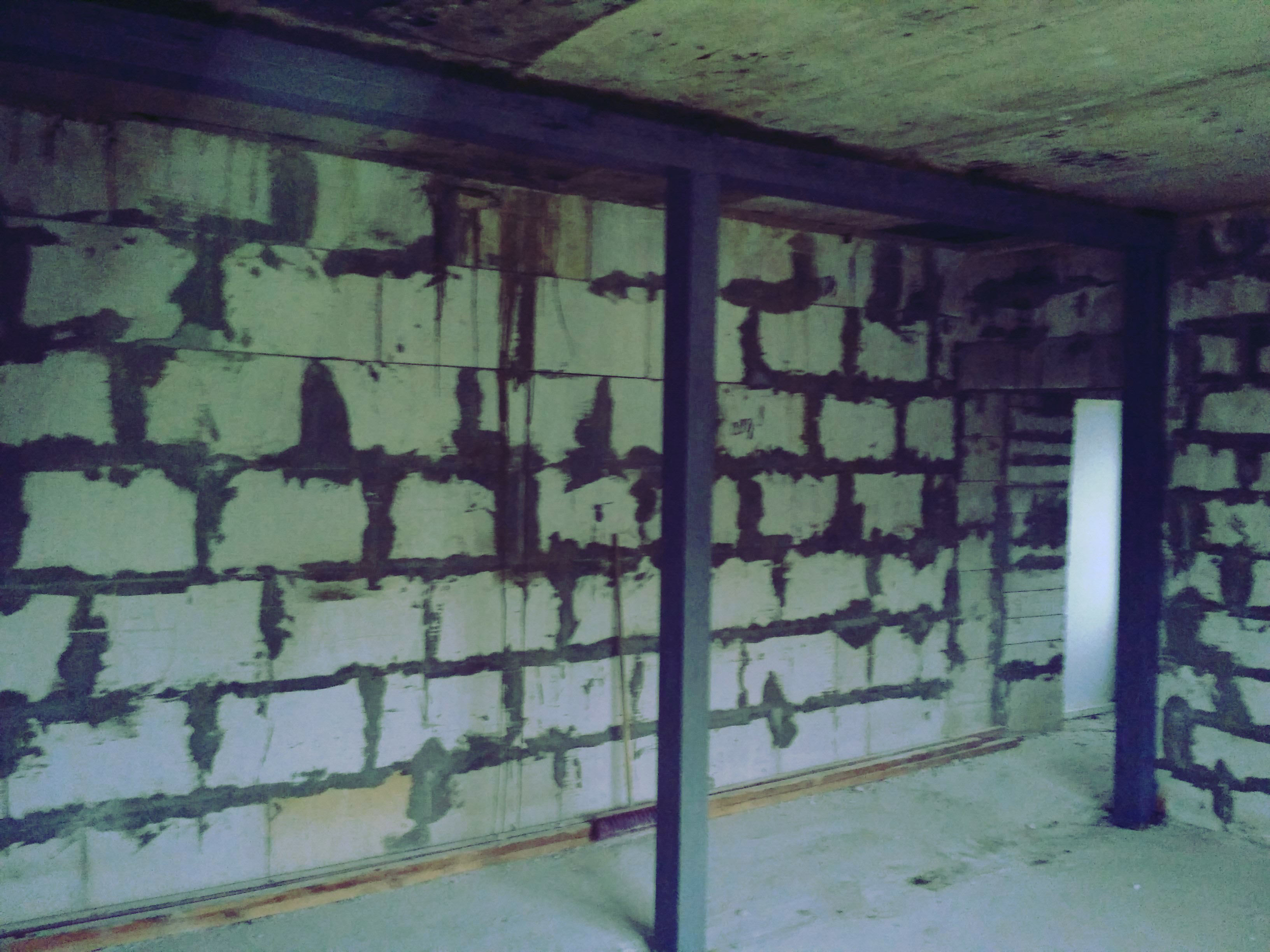 Усиления несущих бетонных, кирпичных или монолитных стен уголками и швеллером