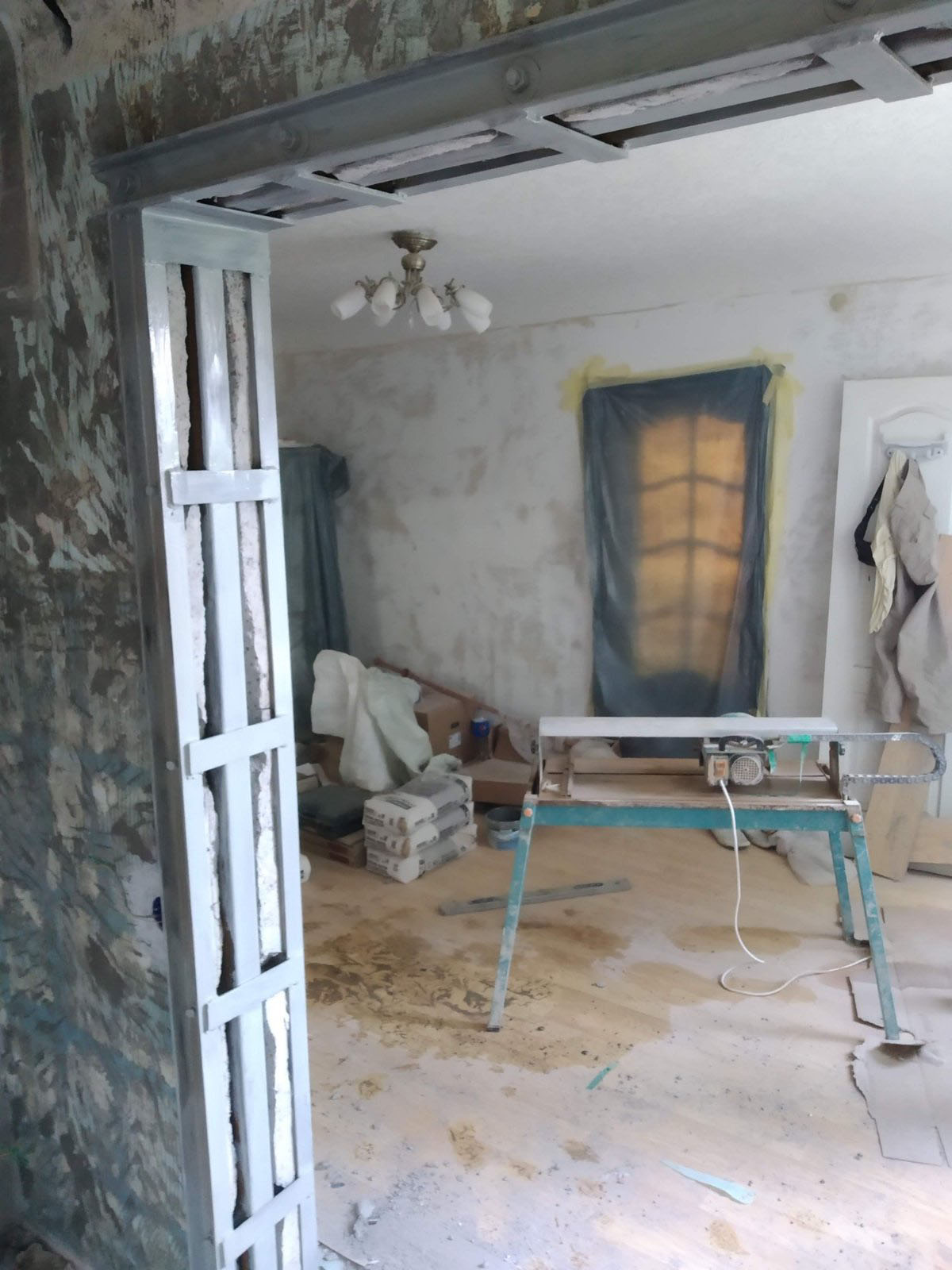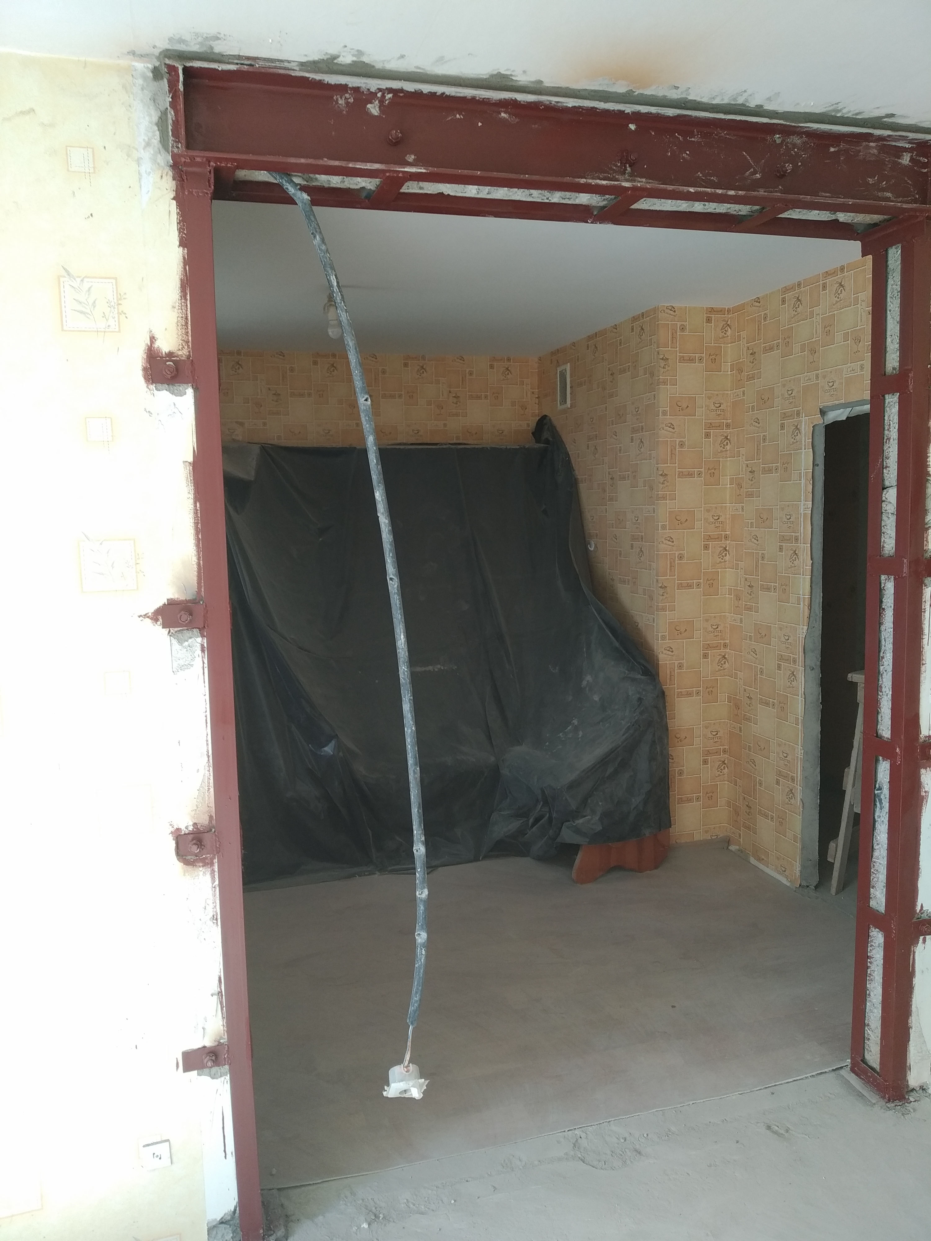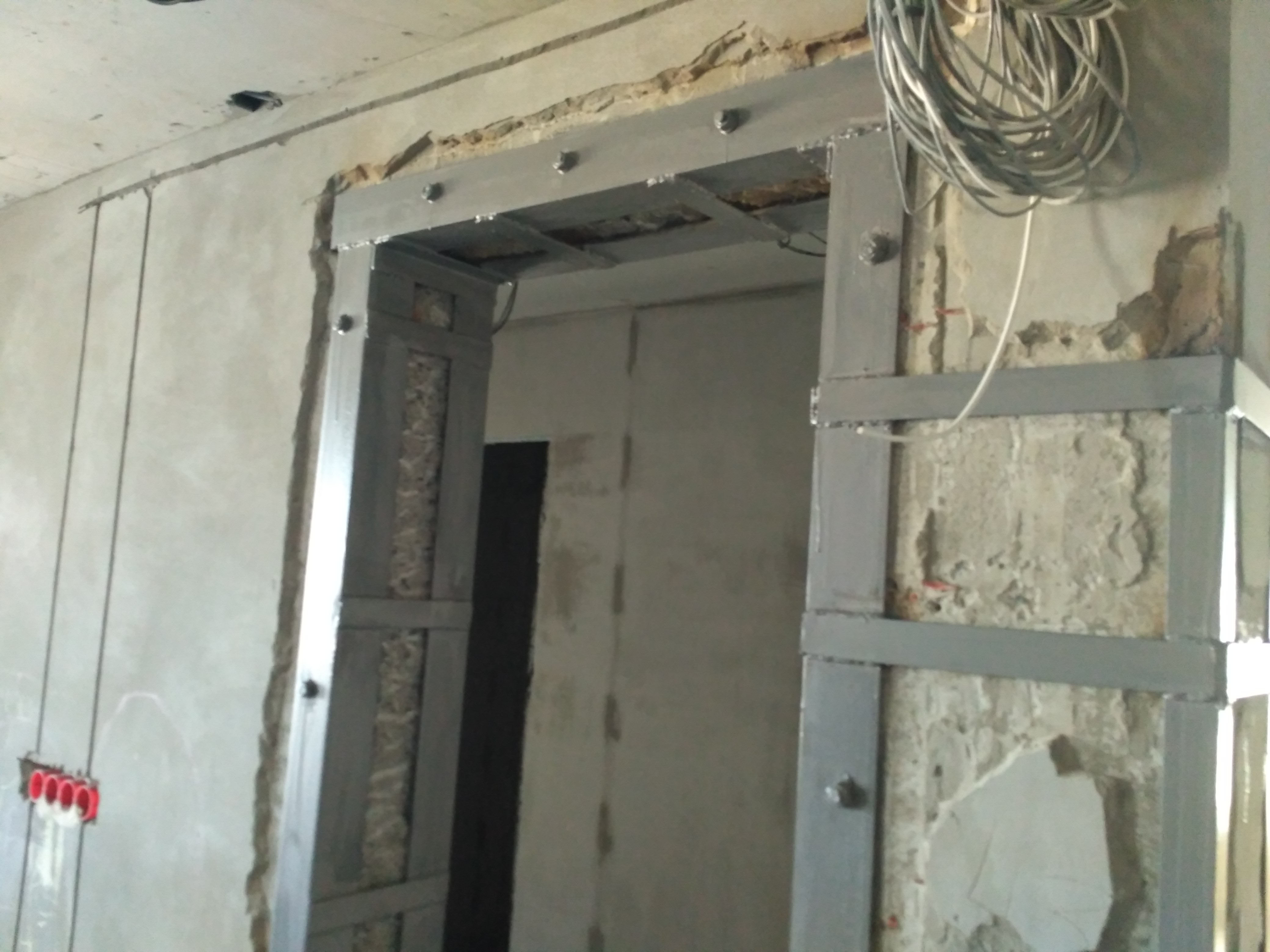 Усиление несущих оконных и дверных проемов швеллерами и уголками с двух сторон